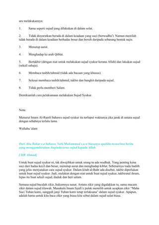. More images for cara sembahyang sunat syukur tiada bacaan khusus semasa sujud tetapi sunat kita bertasbih atau memuji allah sebagaimana di bawah. 1 Mengadap kiblat 2 Bertakbir kemudian sujud sekali dengan membaca doa sepertimana doa. Anjuran dan Tata Cara Shalat Syukur.